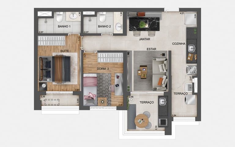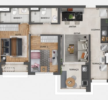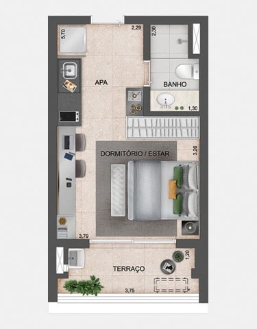 Studios, 1 e 2 Dorms.